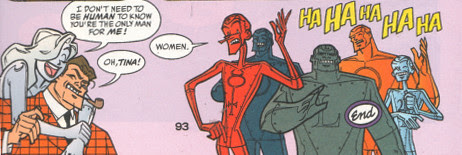Of course, the Metal Men are relaxing in this groovy setting, every goofy, neurotic one of them, along with Doc Magnus himself (in his ever-present checked sport coat). Some of my favorite characters, despite - or because of - their improbable psycho-sexual backgrounds.